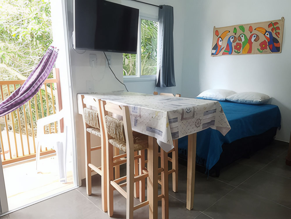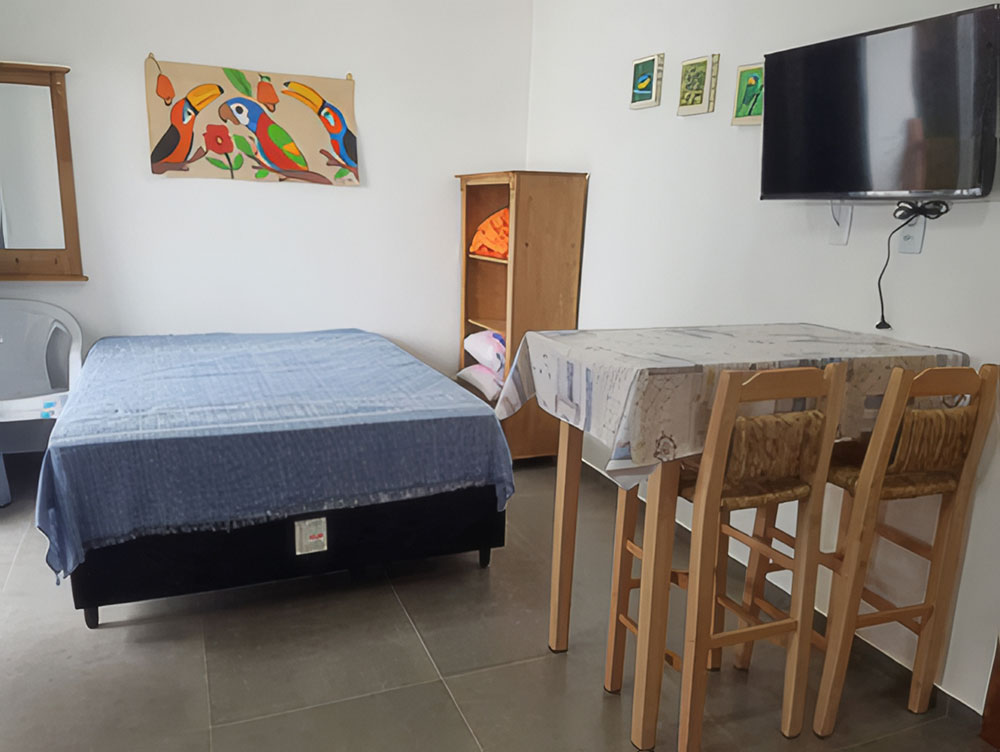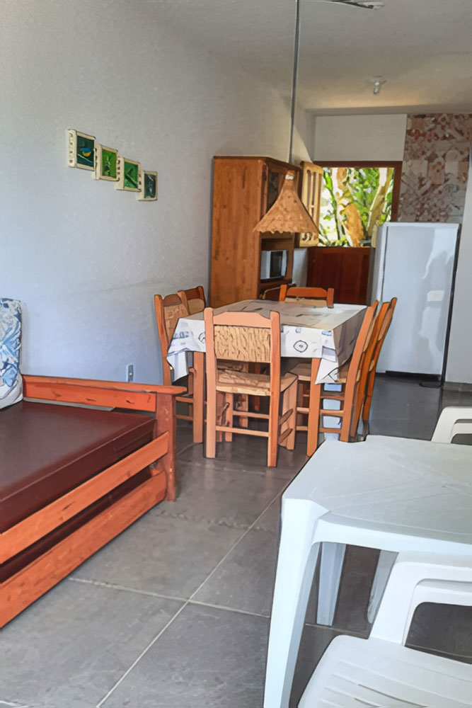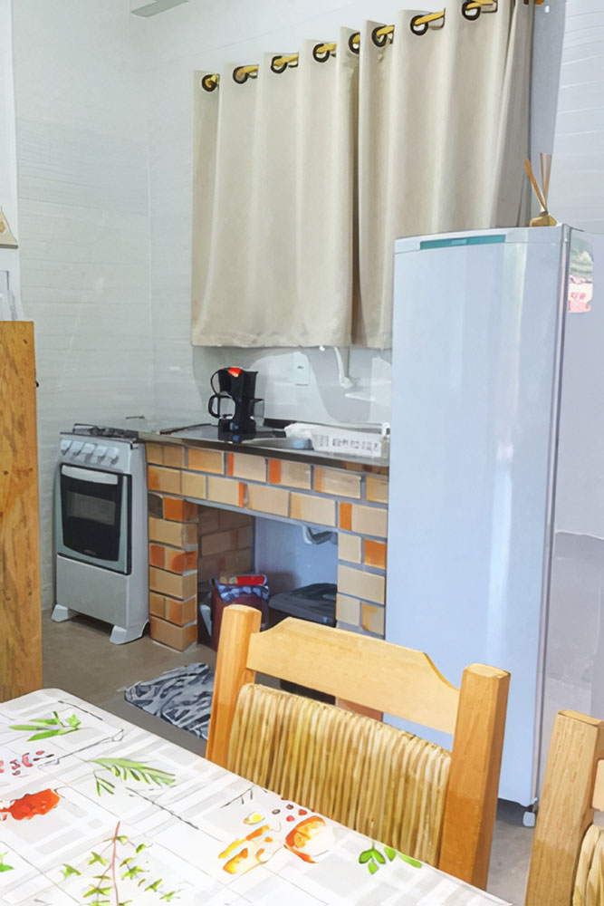 - Ar condicionado no dormitório de casal e ventilador de teto no dormitório de solteiro