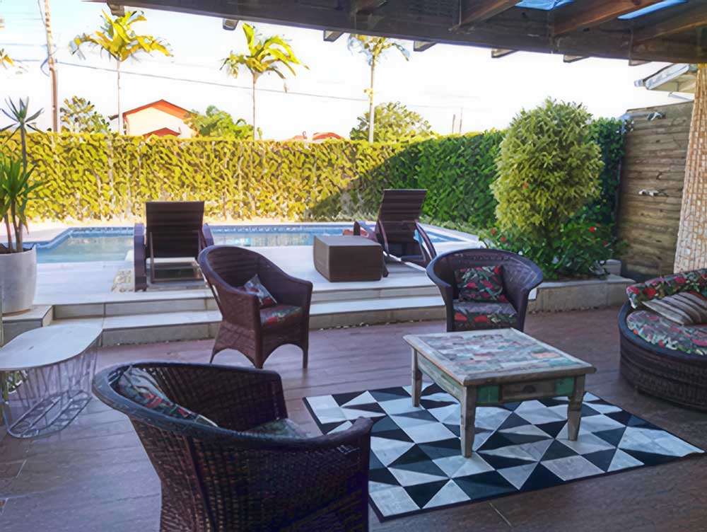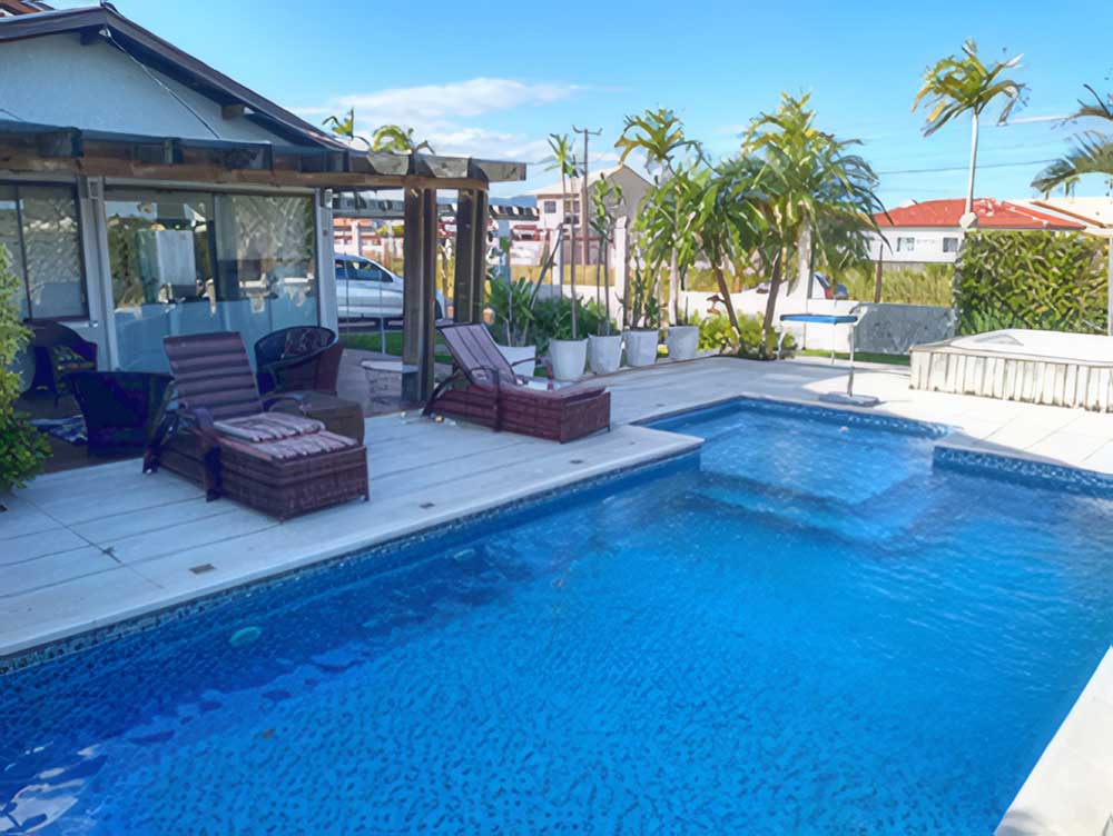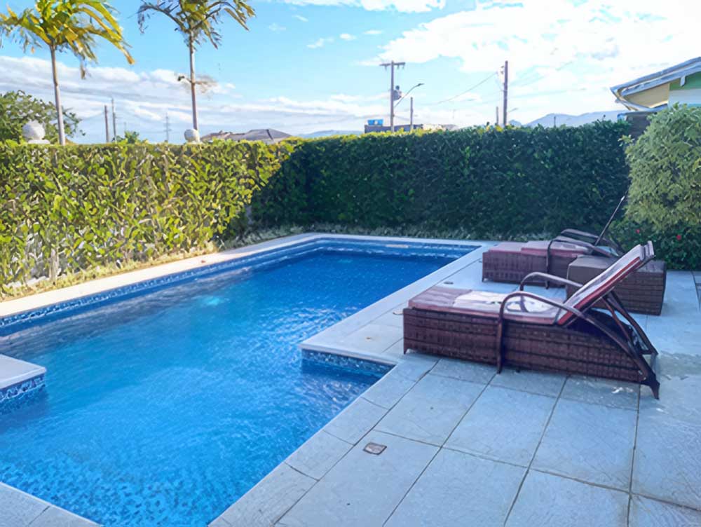 Aluga-se casa situada na Enseada da Pinheira, aproximadamente 300 metros da praia, equipada com: