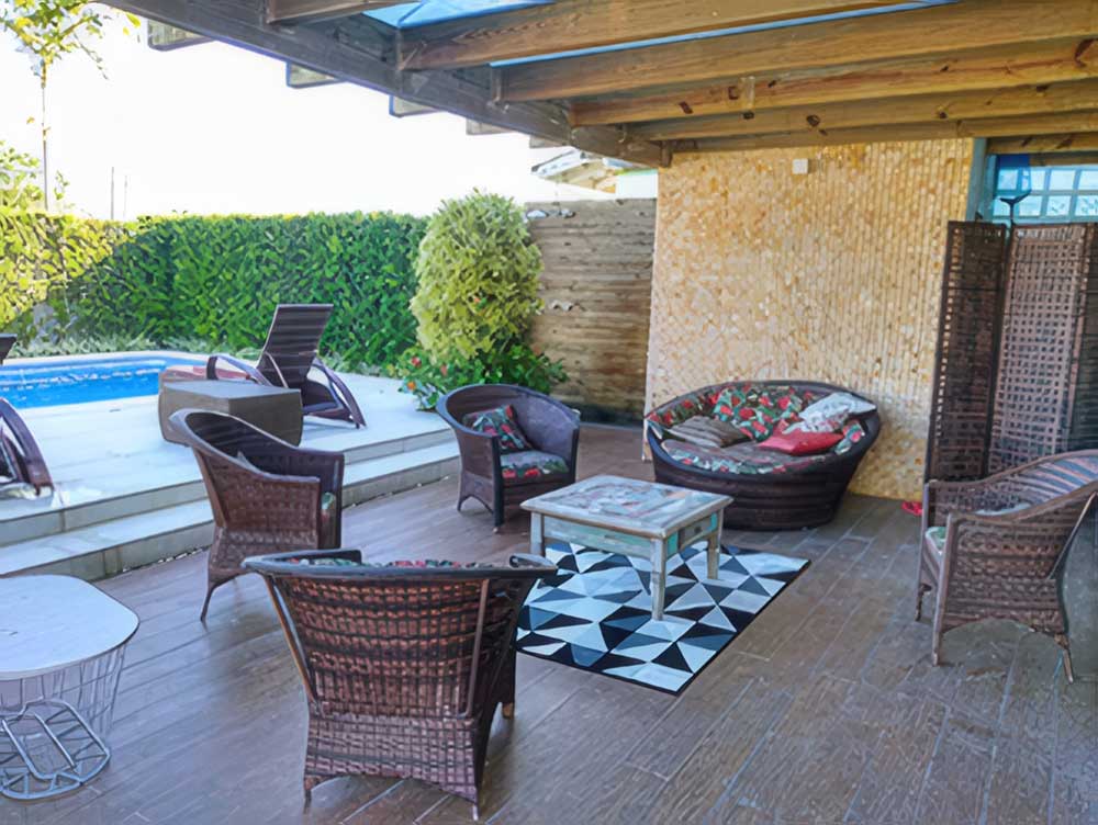 - Área de lazer (com mesa de sinuca, mesa para churrasco, Smart TV 40", churrasqueira, espetos, grelha, fogão e forno a lenha para pizza)