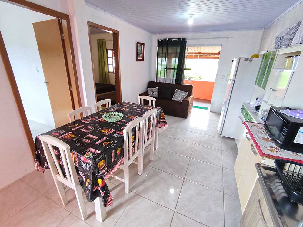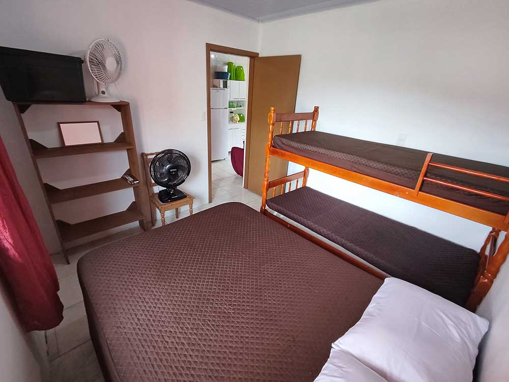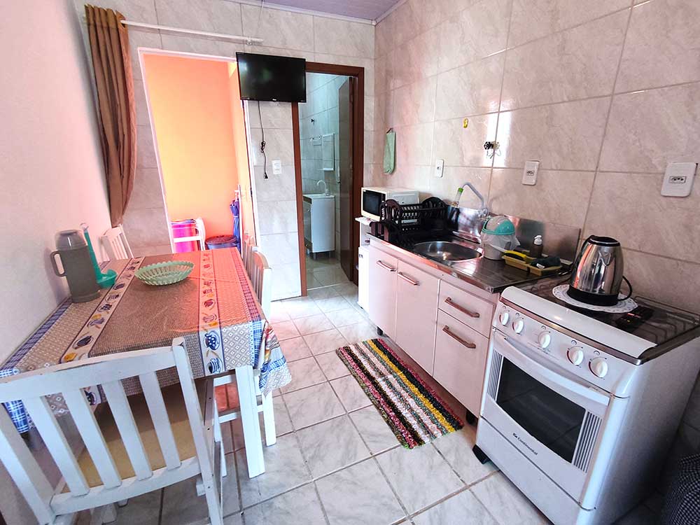 - Cozinha completa (com microondas, geladeira duplex, liquidificador, batedeira, sanduicheira e TV)