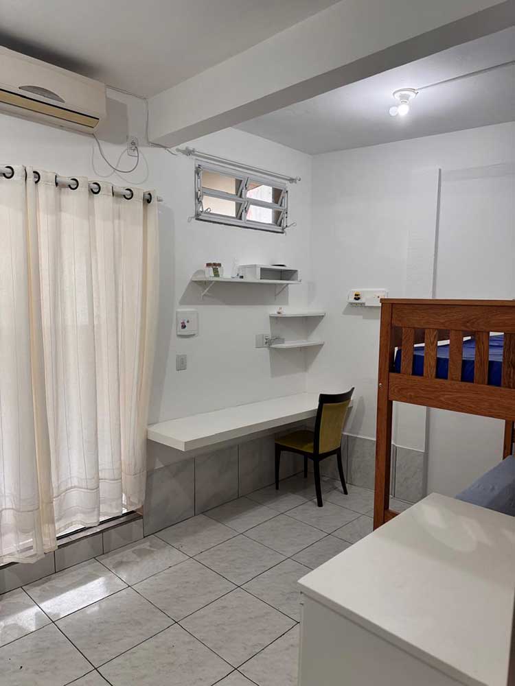 - Sala de estar (com ventilador de parede e Smart TV + canais por assinatura)