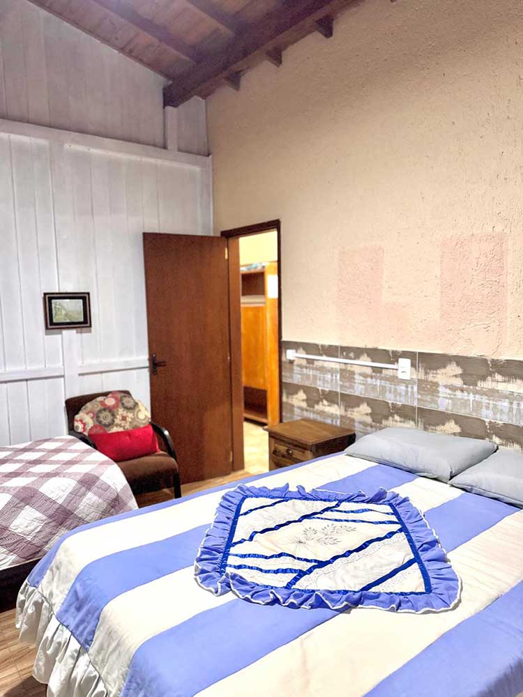 - 04 dormitórios (sendo 01 suíte de casal com ar condicionado, 01 dormitório com cama de casal + cama de solteiro e ar condicionado, 01 dormitório de casal e 01 dormitório de solteiro)