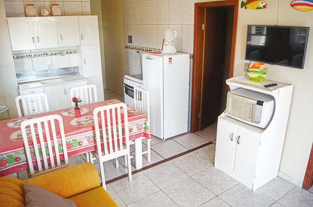 Apartamentos na Praia de Baixo da Pinheira, aproximadamente 300 metros da praia, equipados com: