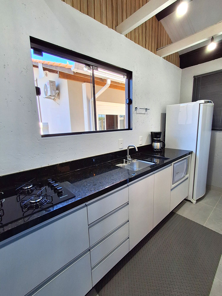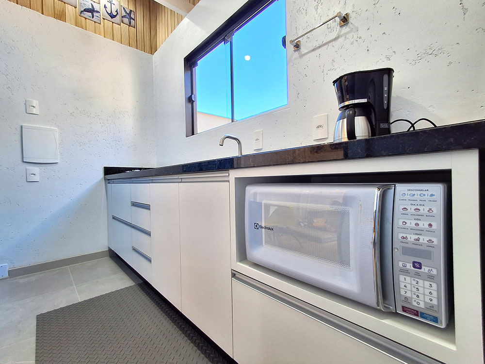 - Cozinha completa (com microondas, liquidificador, air fryer, sanduicheira e cafeteira)