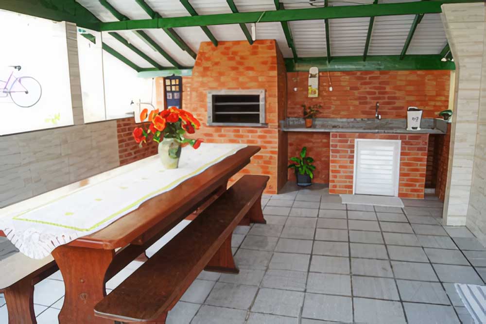 - Área coberta com churrasqueira (com espetos, grelha e mesa para 8 pessoas)