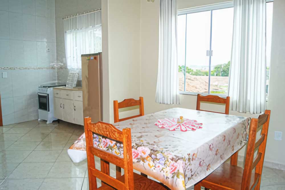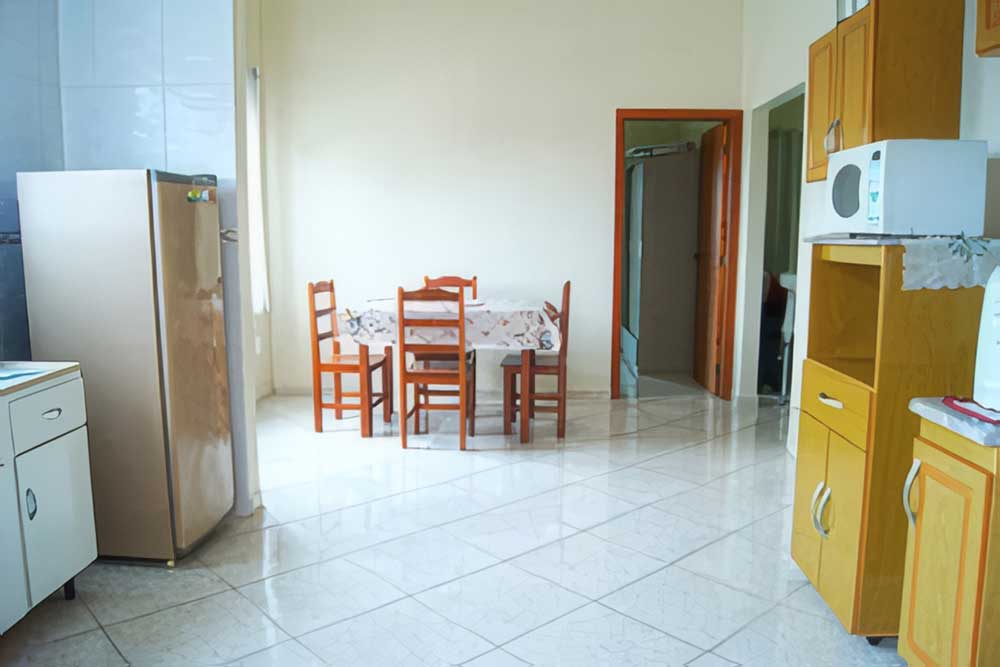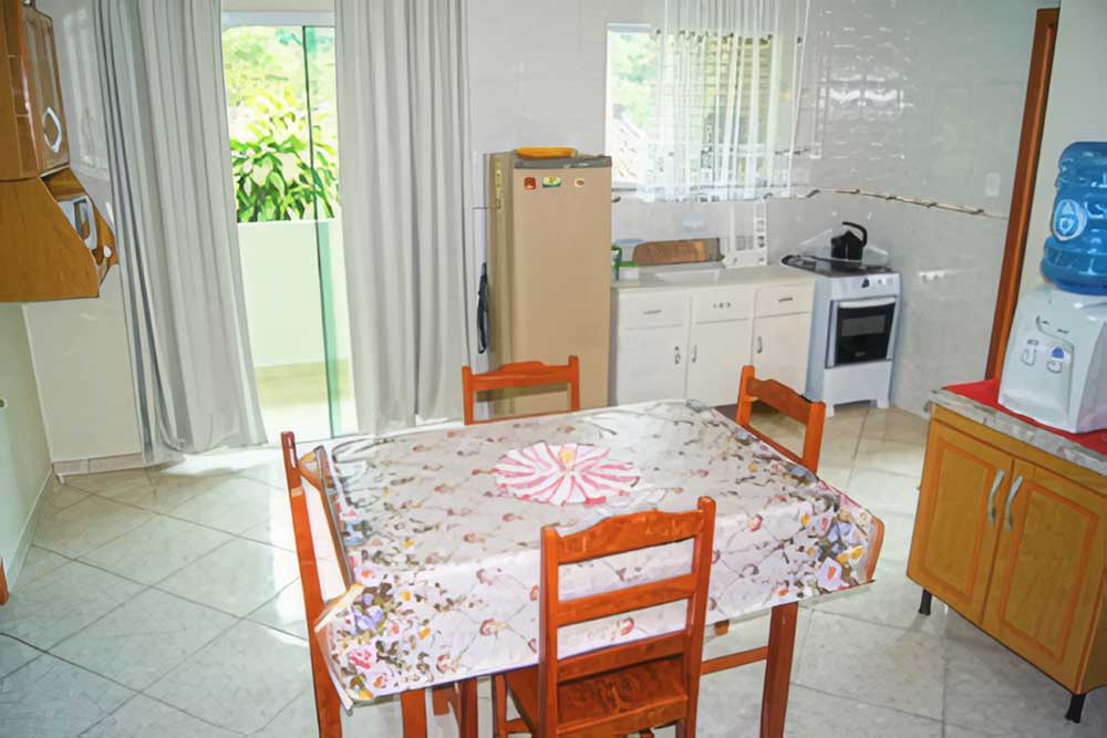 - Cozinha completa (com todos os utensílios domésticos: microondas, liquidificador, geladeira, espremedor de frutas, sanduicheira e bebedouro de água refrigerado)