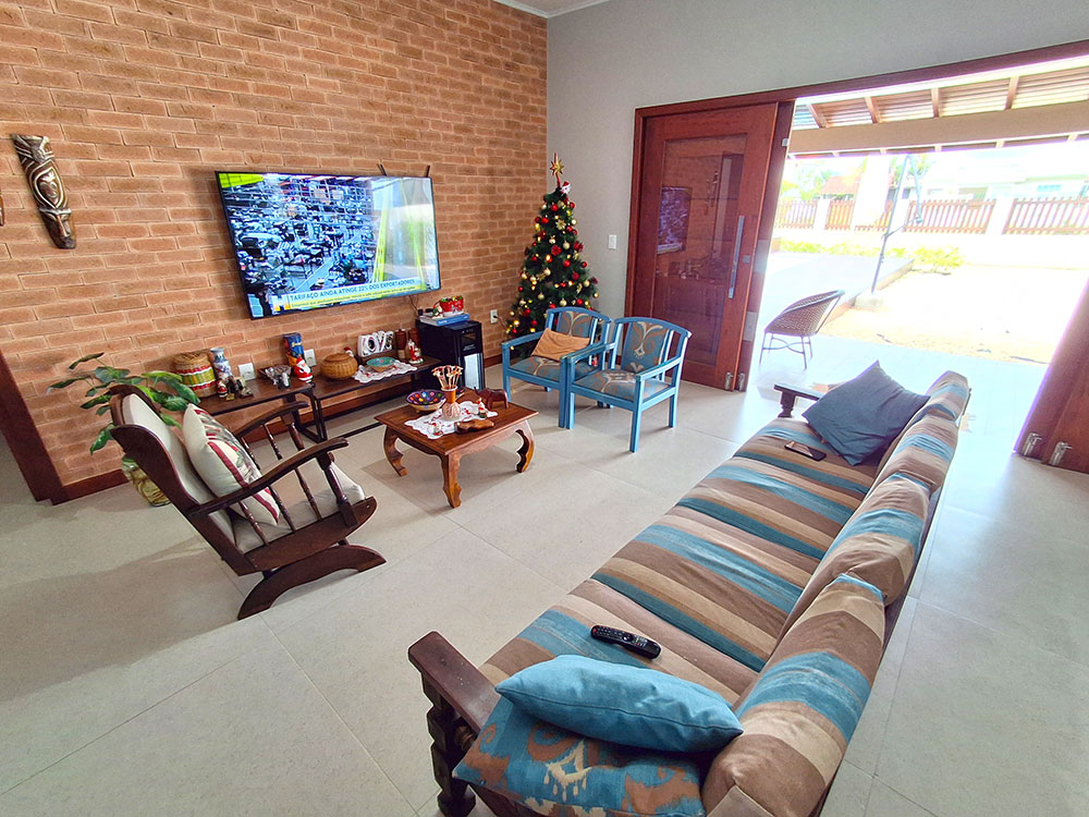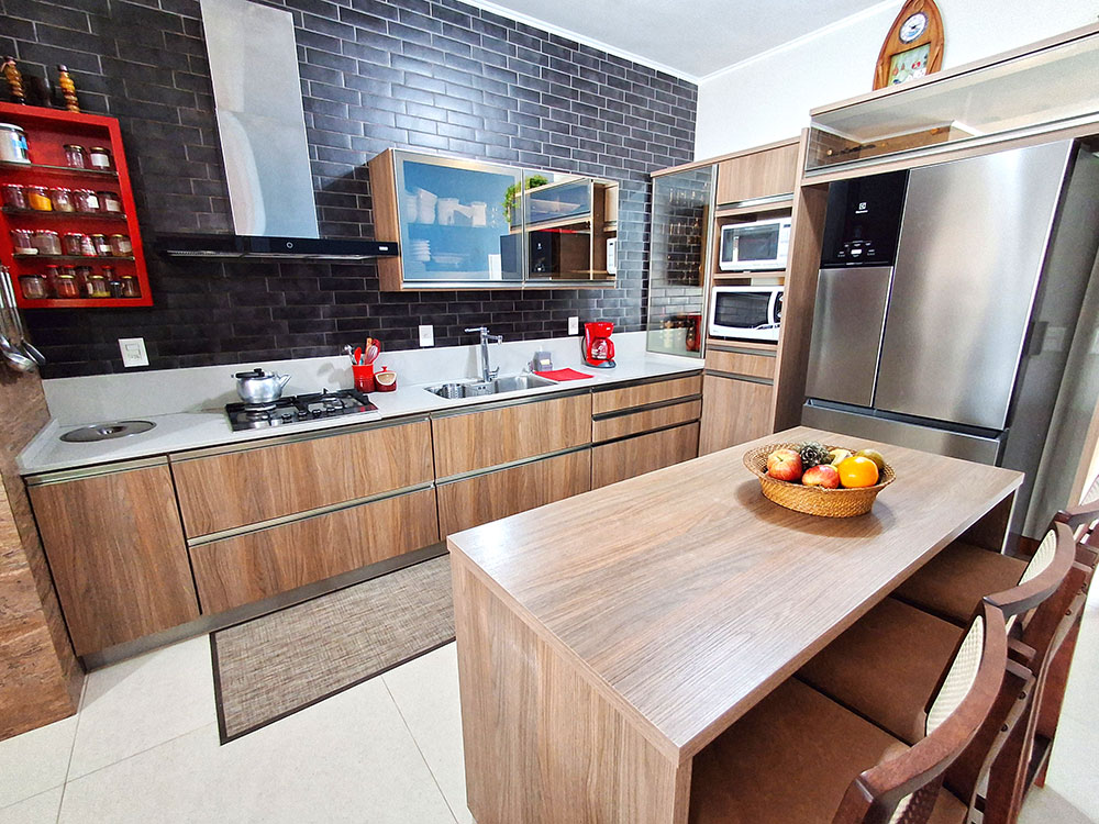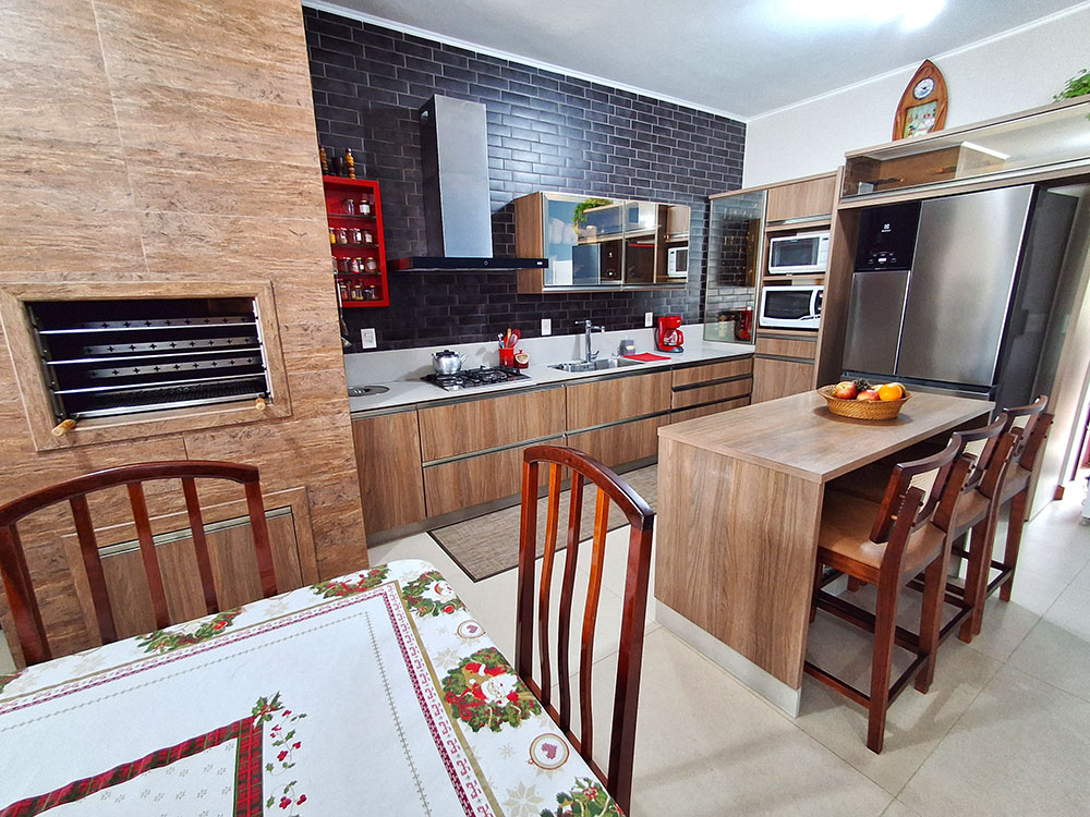 - Cozinha completa (com geladeira duplex, microondas, forno elétrico, liquidificador, air fryer, sanduicheira, cafeteira, churrasqueira, espetos e grelha)