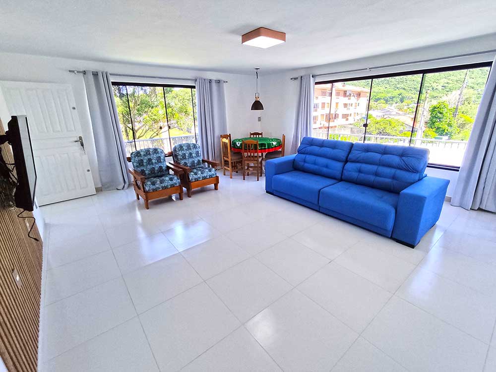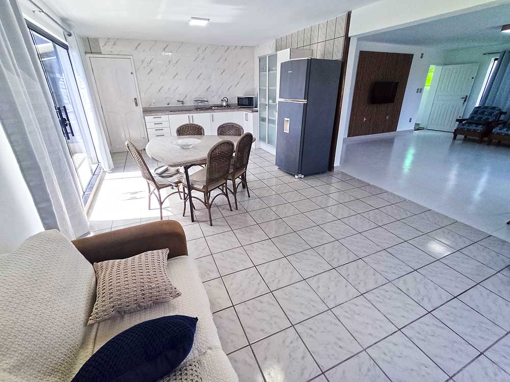 Aluga-se casa situada na Praia de Cima da Pinheira, aproximadamente 100 metros da praia, com vista para o mar, equipada com: