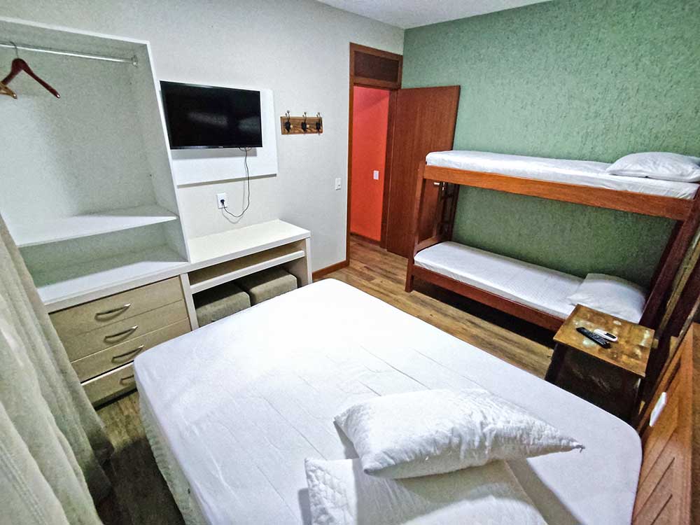 - 01 dormitório com 01 cama de casal e 01 beliche