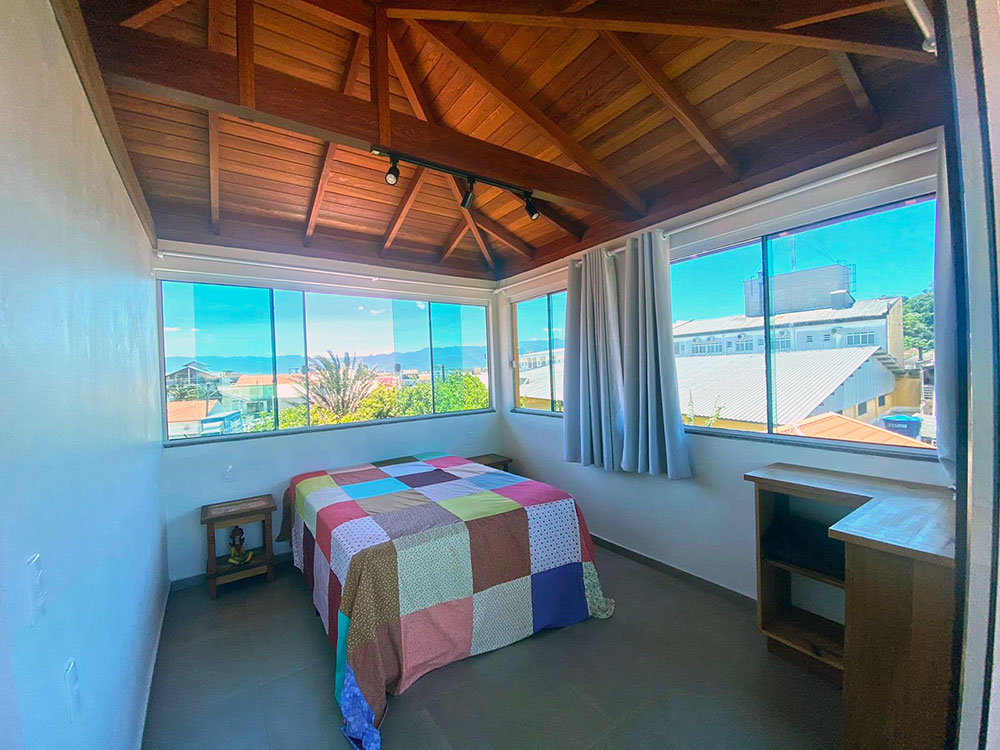 - 02 quartos com cama de casal (sendo um quarto com ar condicionado e o outro com ventilador portátil)