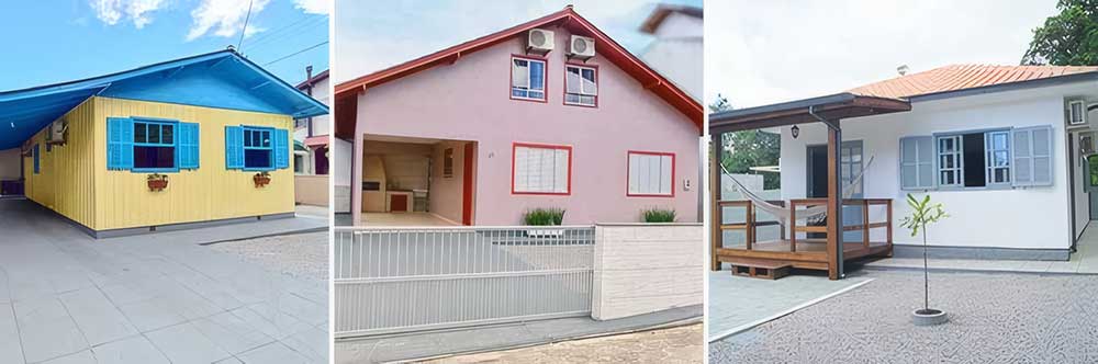 Oferecemos casas para aluguel localizadas na Praia de Cima e Praia de Baixo da Pinheira, próximas da praia, com cozinha completa, ar condicionado, internet Wi-Fi e acomodações para 06 pessoas.