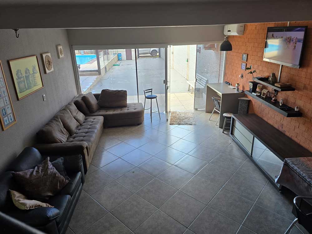 - Sala de estar (com TV e mesa de sinuca)