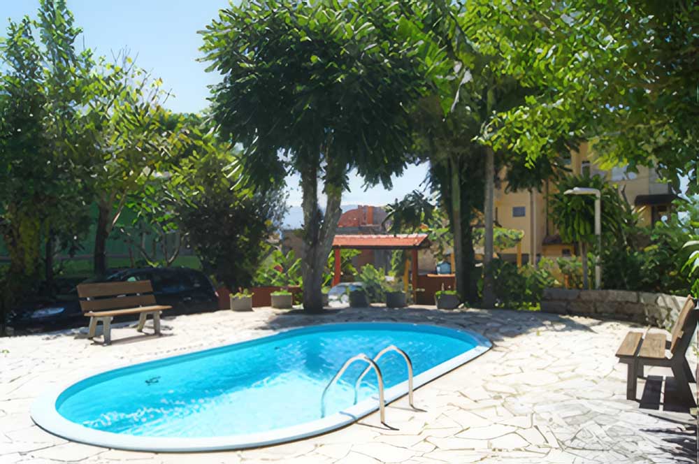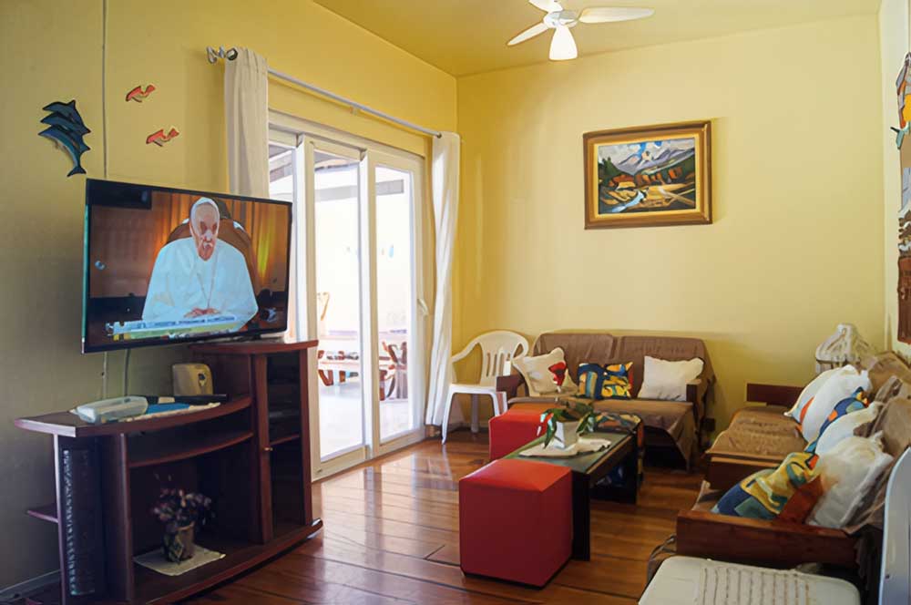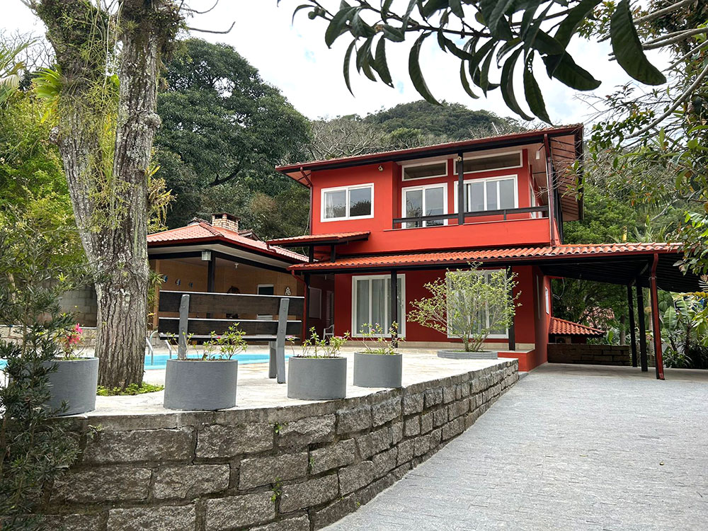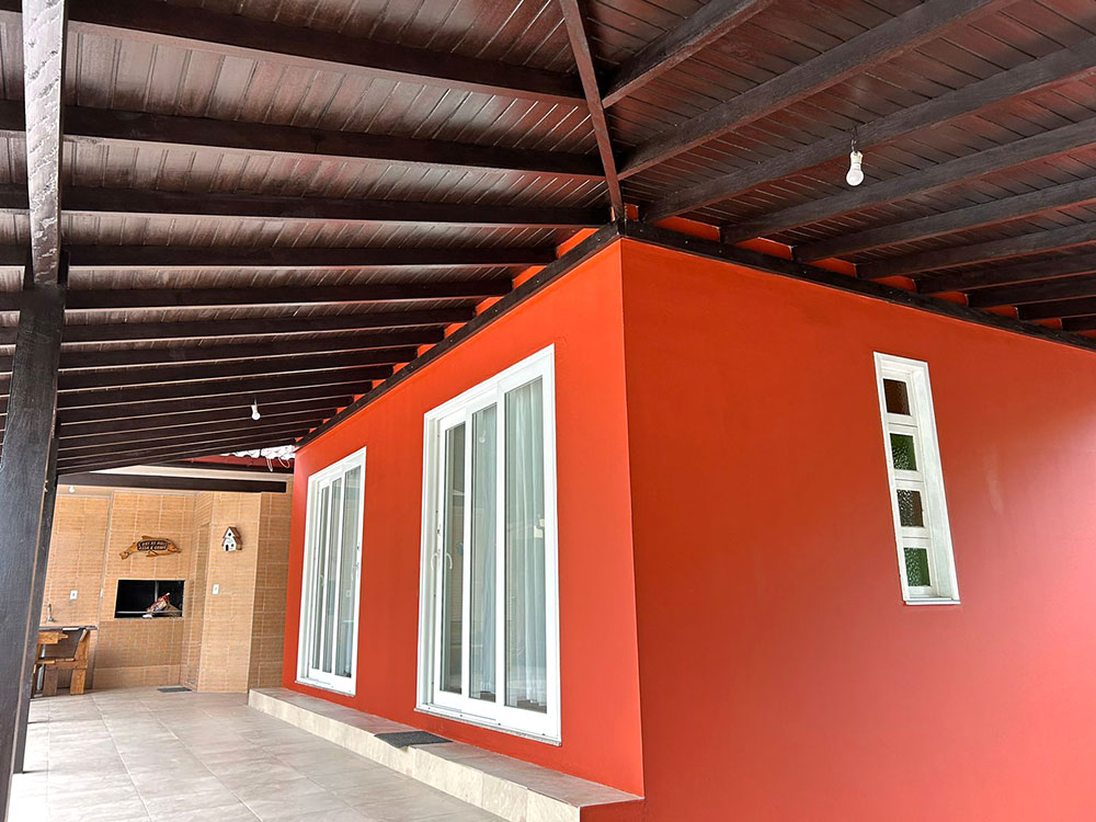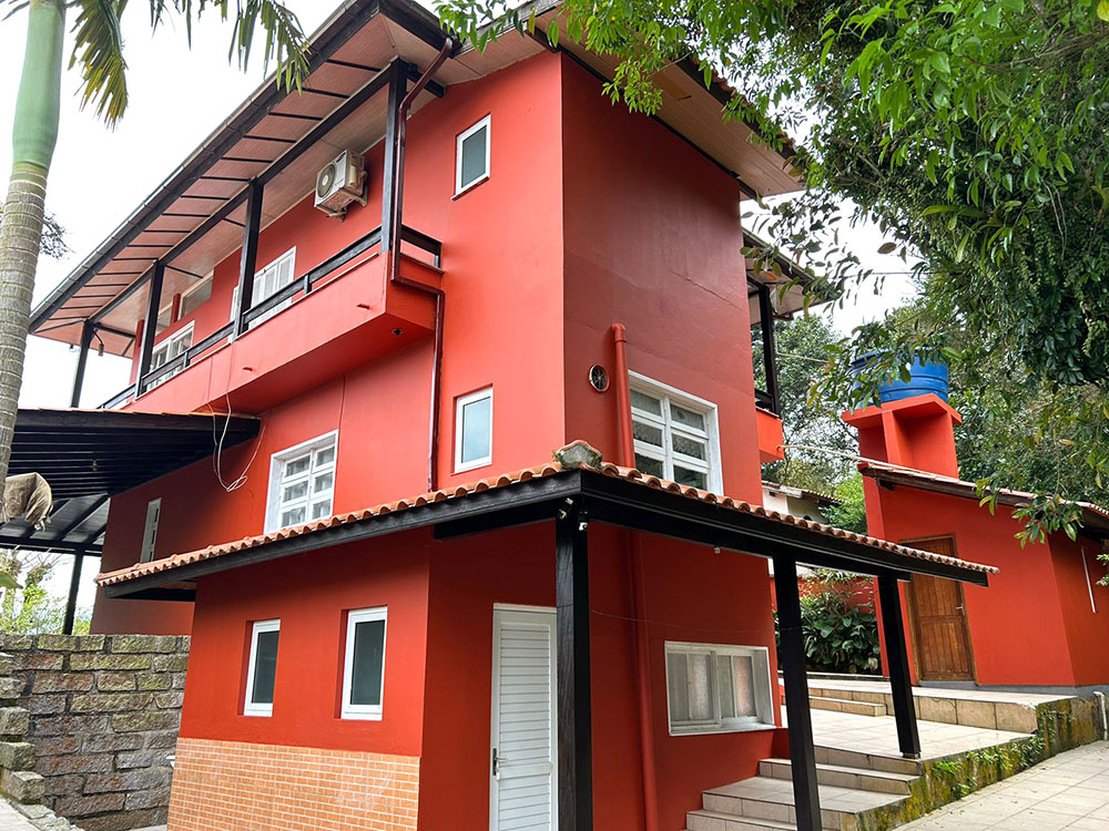 Ampla residência localizada na Praia de Cima da Pinheira, aproximadamente 300 metros da praia, em pátio arborizado, gramado, murado e fechado. A casa conta com: