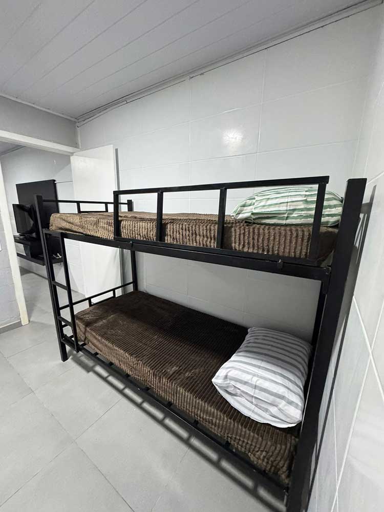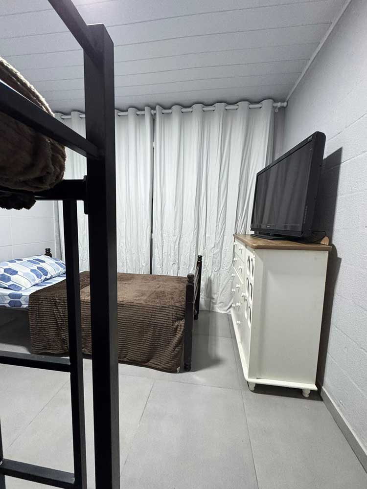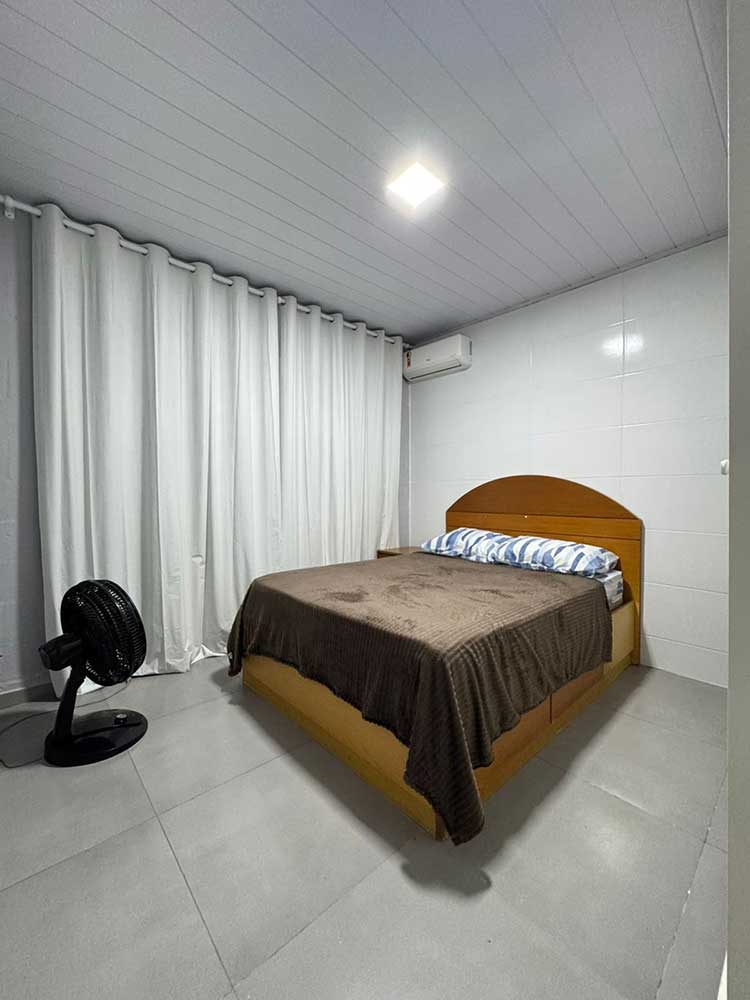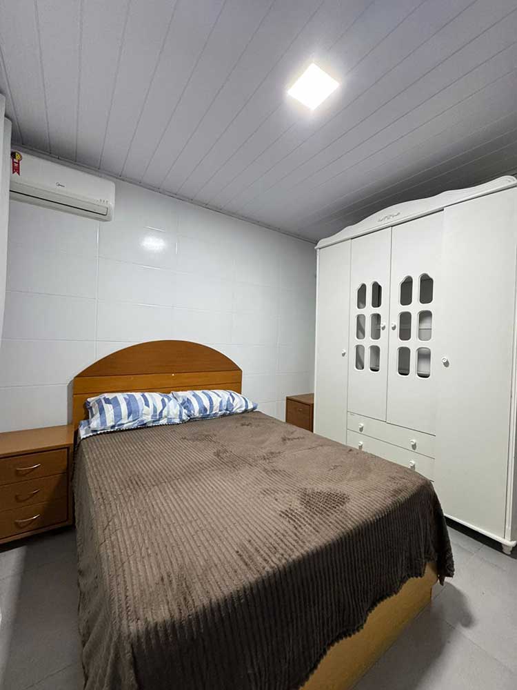 - 02 dormitórios (sendo um de casal com ar condicionado e um de solteiro com camas e ventilador)