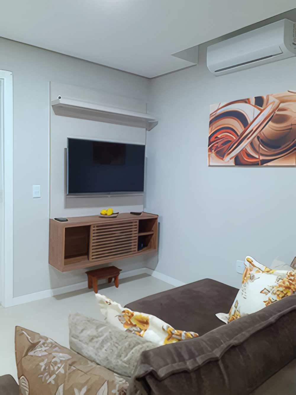 - Sala de estar (com sofá, cervejeira, aparelho de som CD Player, Smart TV 43”, internet Wi-Fi e ar condicionado)