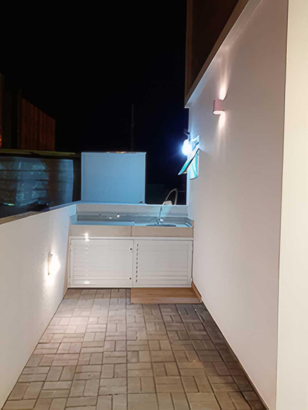 - Pátio Gourmet externo, cercado, conta com churrasqueira, mesa e cadeiras plásticas e pia/tanque