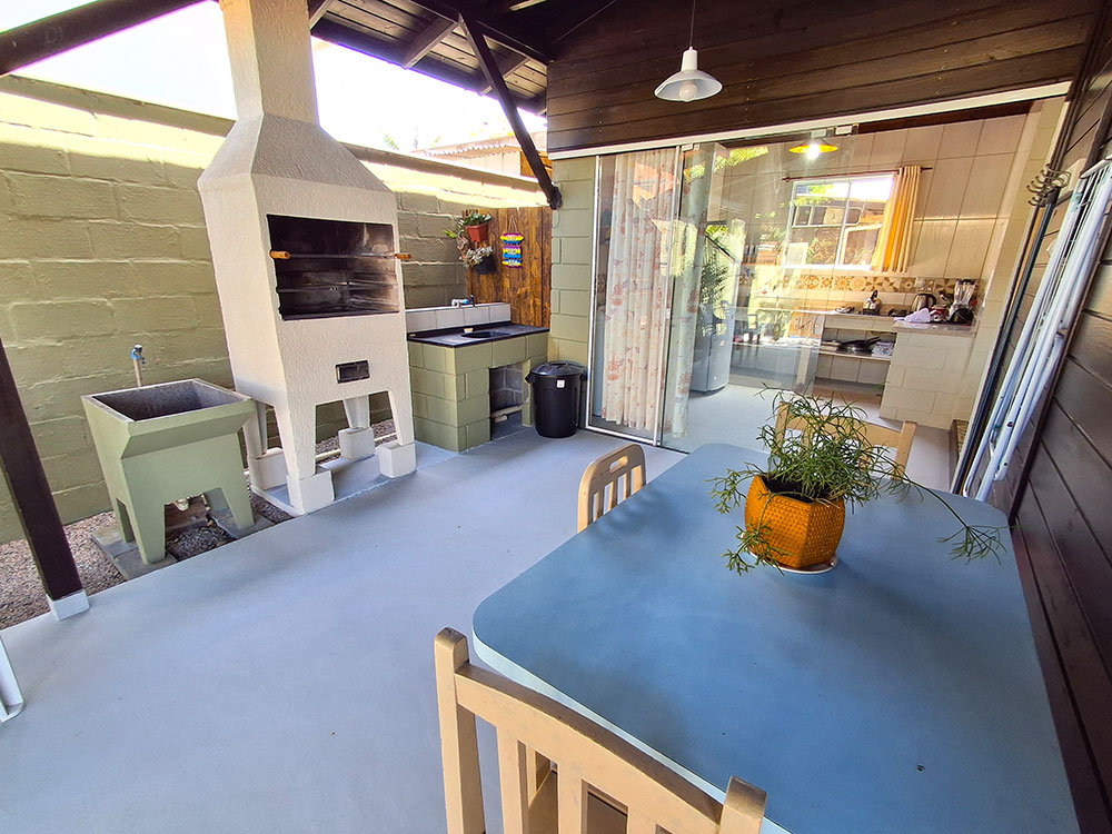 - Área de lazer (com churrasqueira, espetos, grelha e tanque)