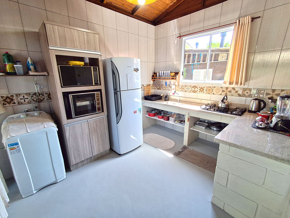 - Cozinha completa (com microondas, liquidificador, geladeira duplex, sanduicheira e forno elétrico)