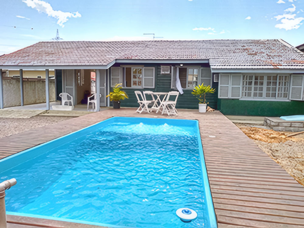Aluga-se casa situada na Enseada da Pinheira, aproximadamente 400 metros da praia, equipada com: