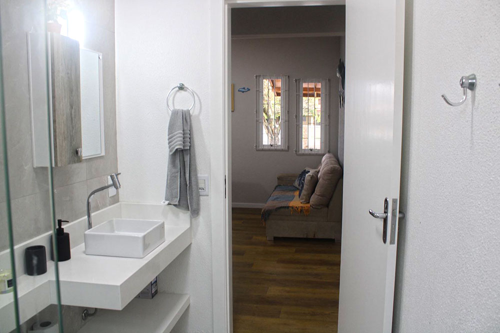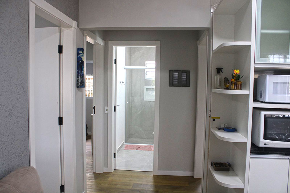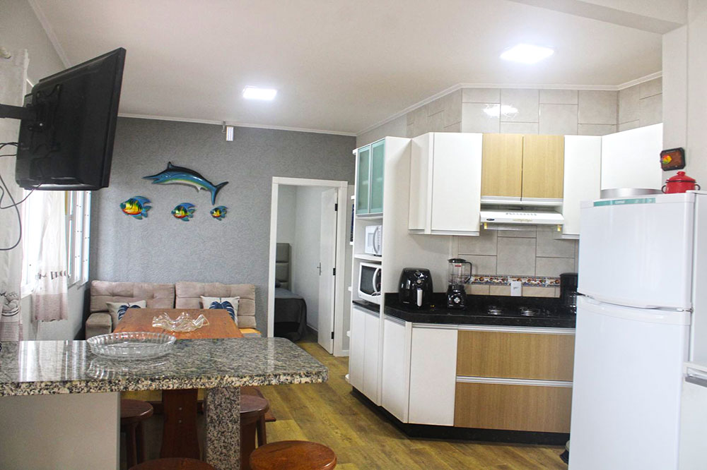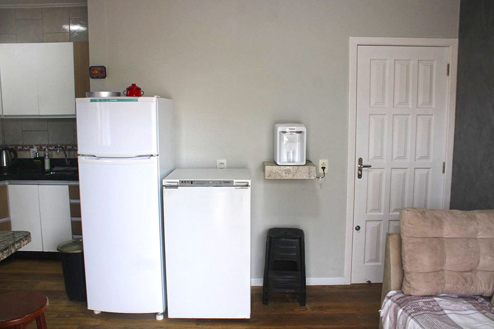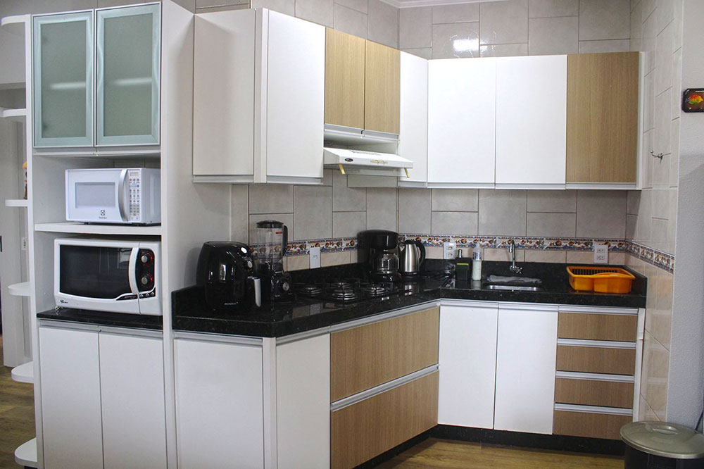 - Cozinha completa (com geladeira duplex, microondas, air fryer, forno elétrico, cafeteira, liquidificador, chaleira elétrica e bebedouro refrigerado)